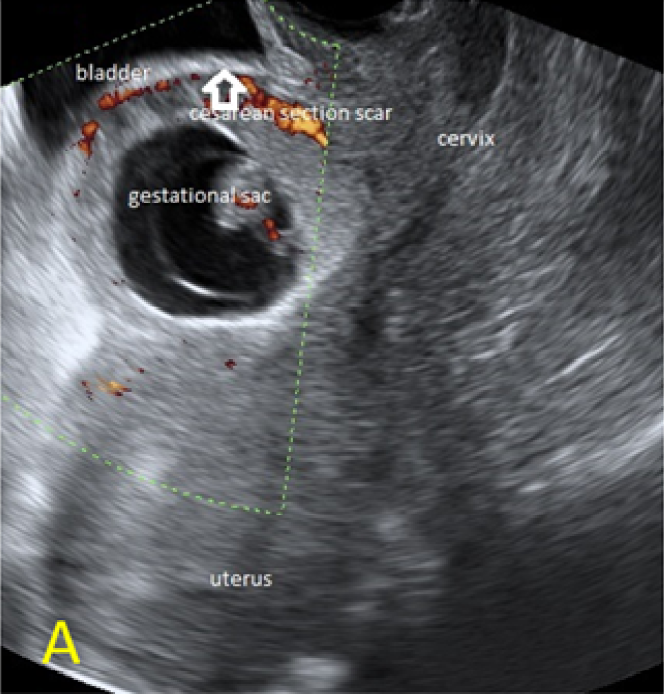 Caesarean scar pregnancy (CSP) is considered a rare and life-threatening type of ectopicpregnancy. The first case of CSP was reported in 1978 (1). Nowadays, the rate of CSP is 1 in 2000 cases and accounts for 6% all ectopic pregnancies among women with a prior caesarean delivery (2). As the rate of caesarean delivery is increasing worldwide, the CSP pathology will likely become a very frequent entity in the near future. Fortunately, its detection is improving through the widespread use of transvaginal ultrasound (3) and magnetic resonance imaging may add valuable information in selected