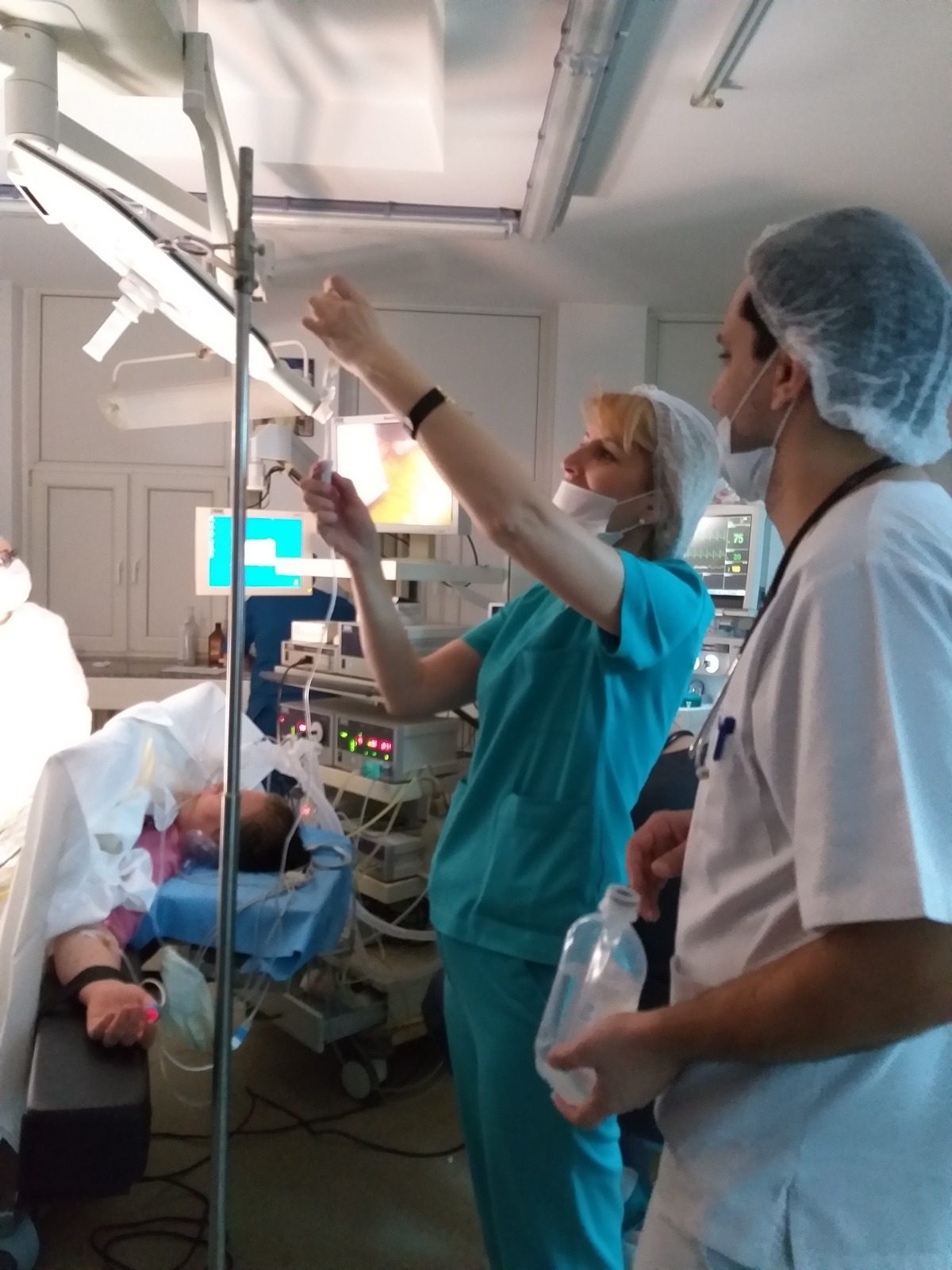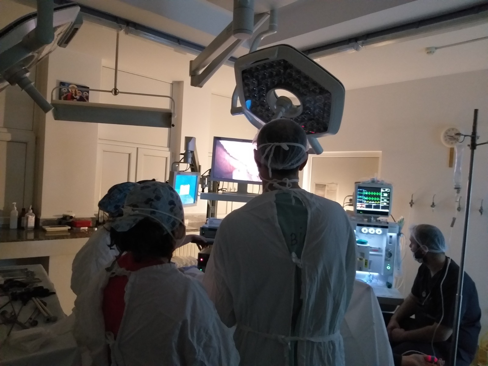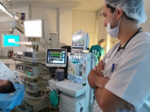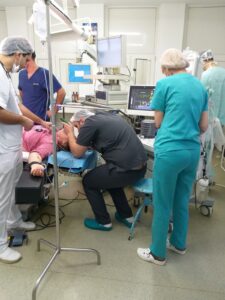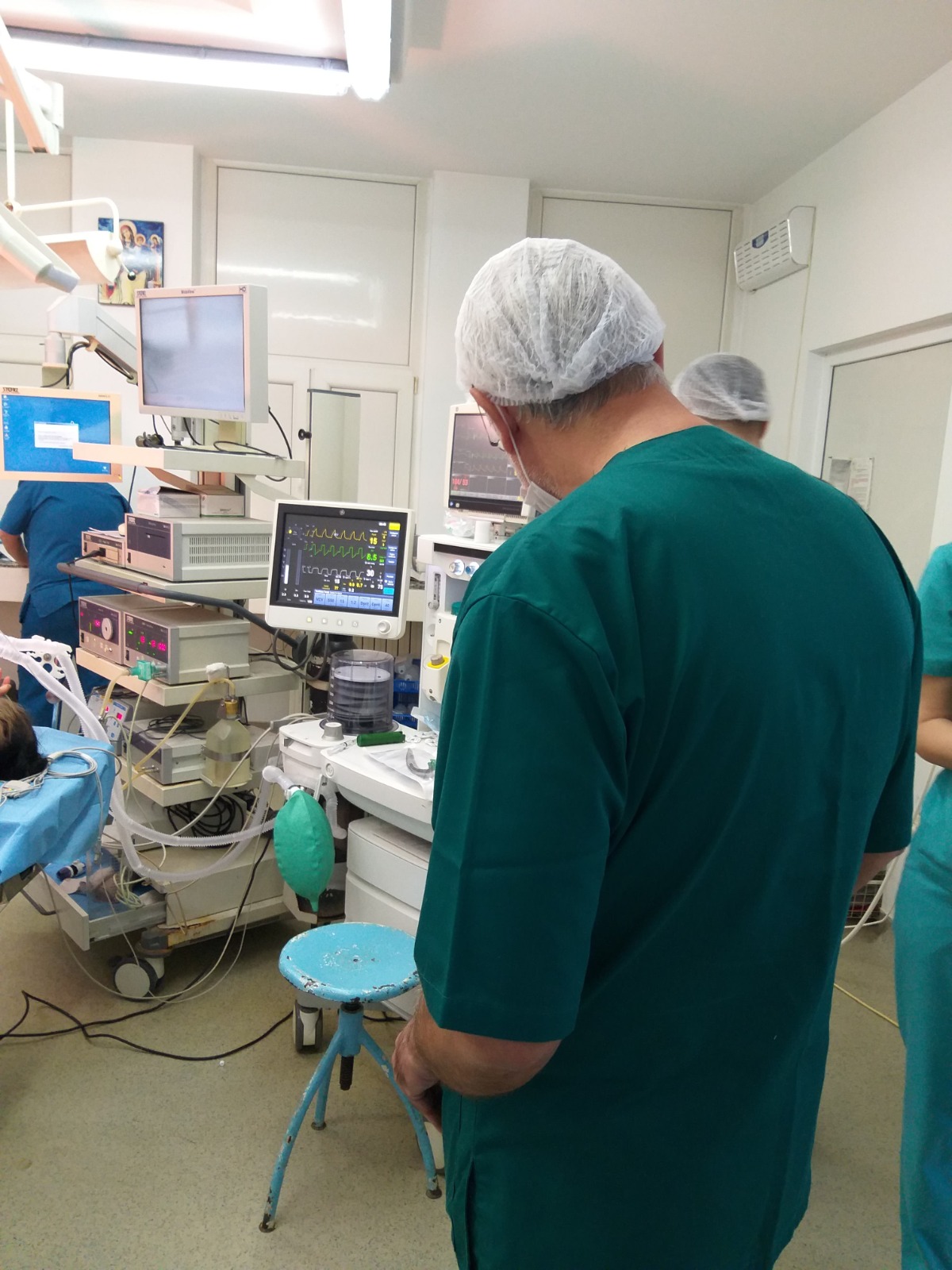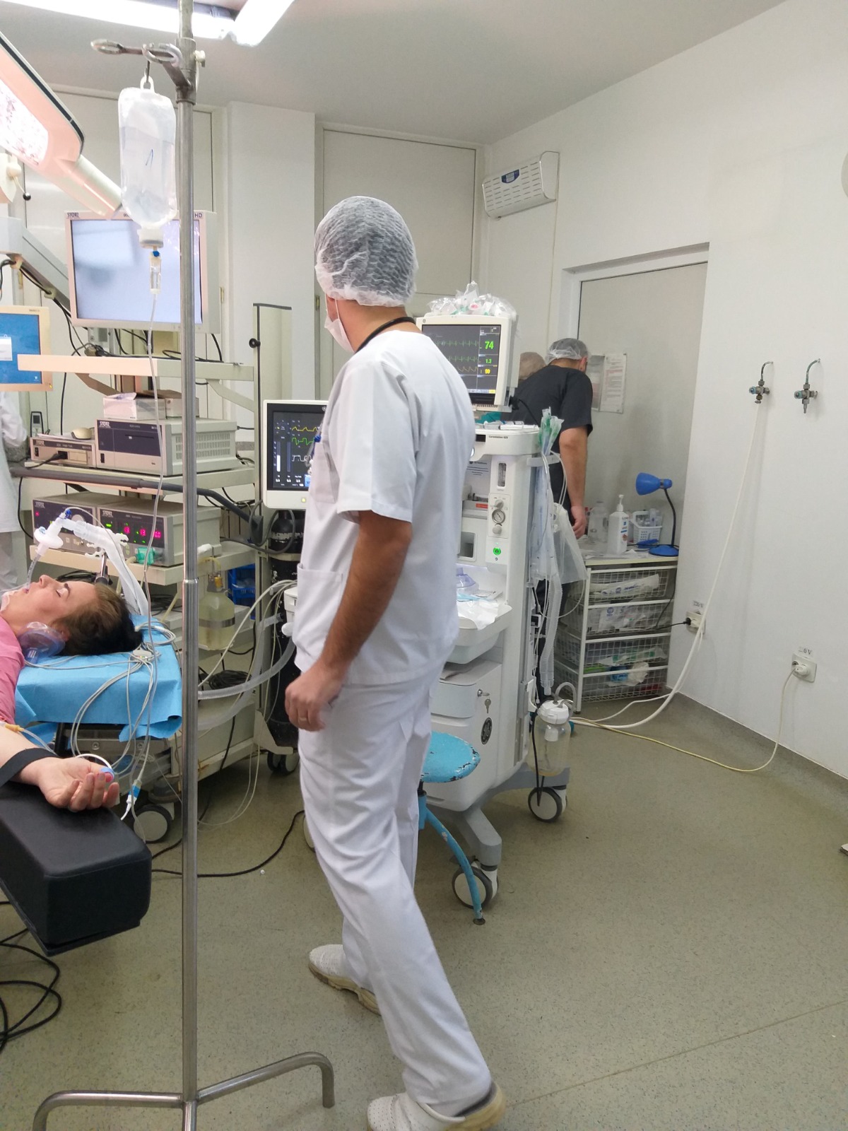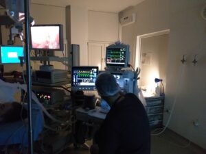 On the second day of the visit, the doctor and the medical assistant from Kozloduy participated to the activity in the Operating Room – anesthesia and assisted to a laparoscopic cholecystectomy on a 21 years old patient. Discussions about substances used for anesthezia, duration of the operation, medical equipment, intubation, type of operations made by laparoscopy etc. were held among the specialists.