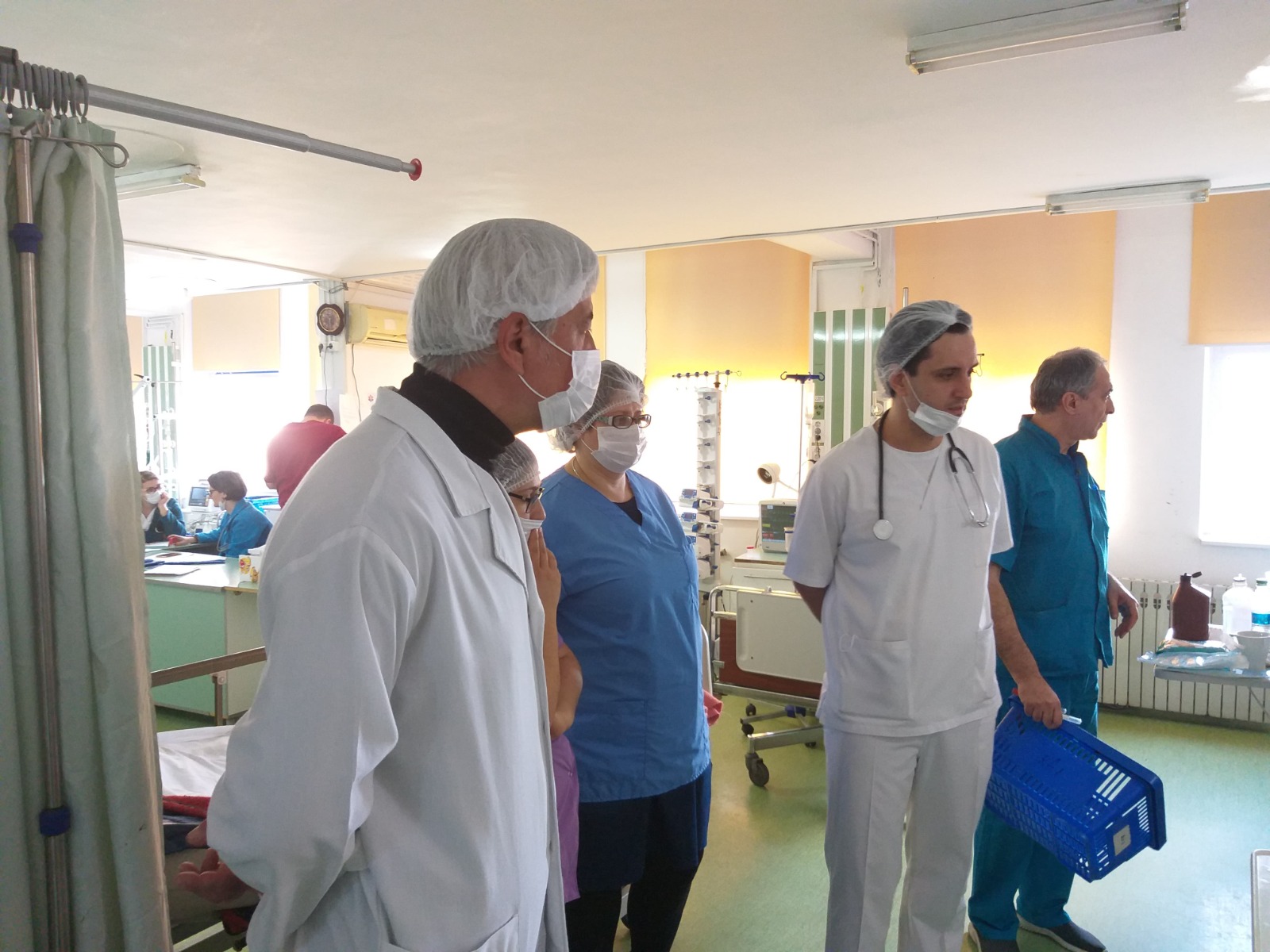 The first day of the visit started with the presentation of the Intensive Care Department, made by Doctor Ionescu Mircea. Discussions about the number of doctors and assistants on the department, number of beds, number of patients each medical assistant takes care of, medical equipment, type of investigations took at each hospitals etc. were held among the specialists.