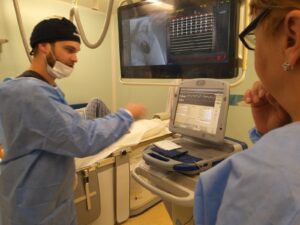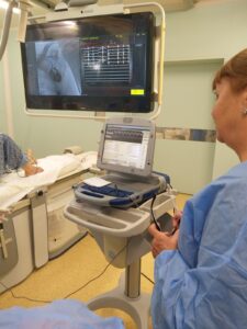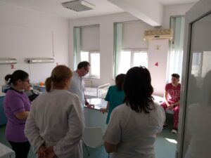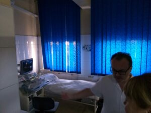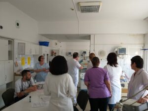 On the third day, the specialists from Kozloduy attended the medical visit within the department. The cases of the in-patients were presented. The doctors discussed about investigations took for each patient, treatment, evolution of the patient. They also assisted to a transoesophageal echography.