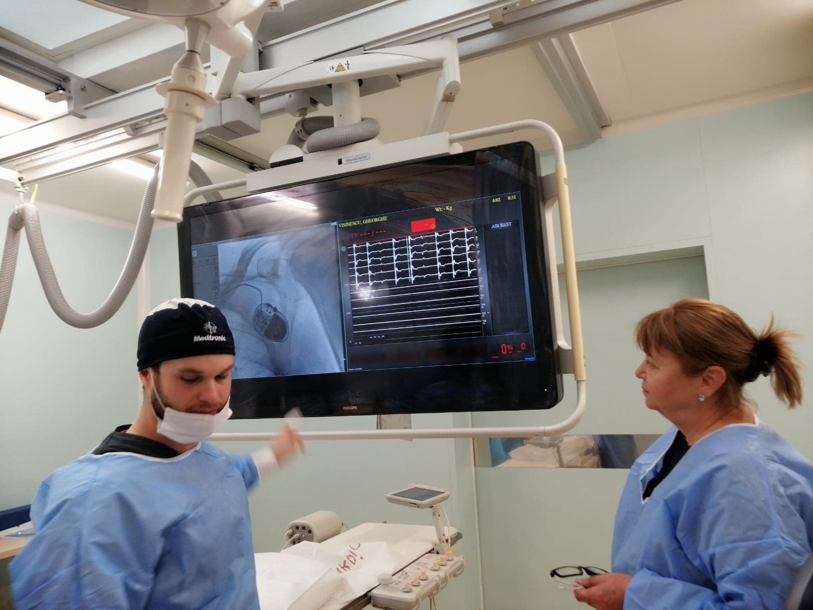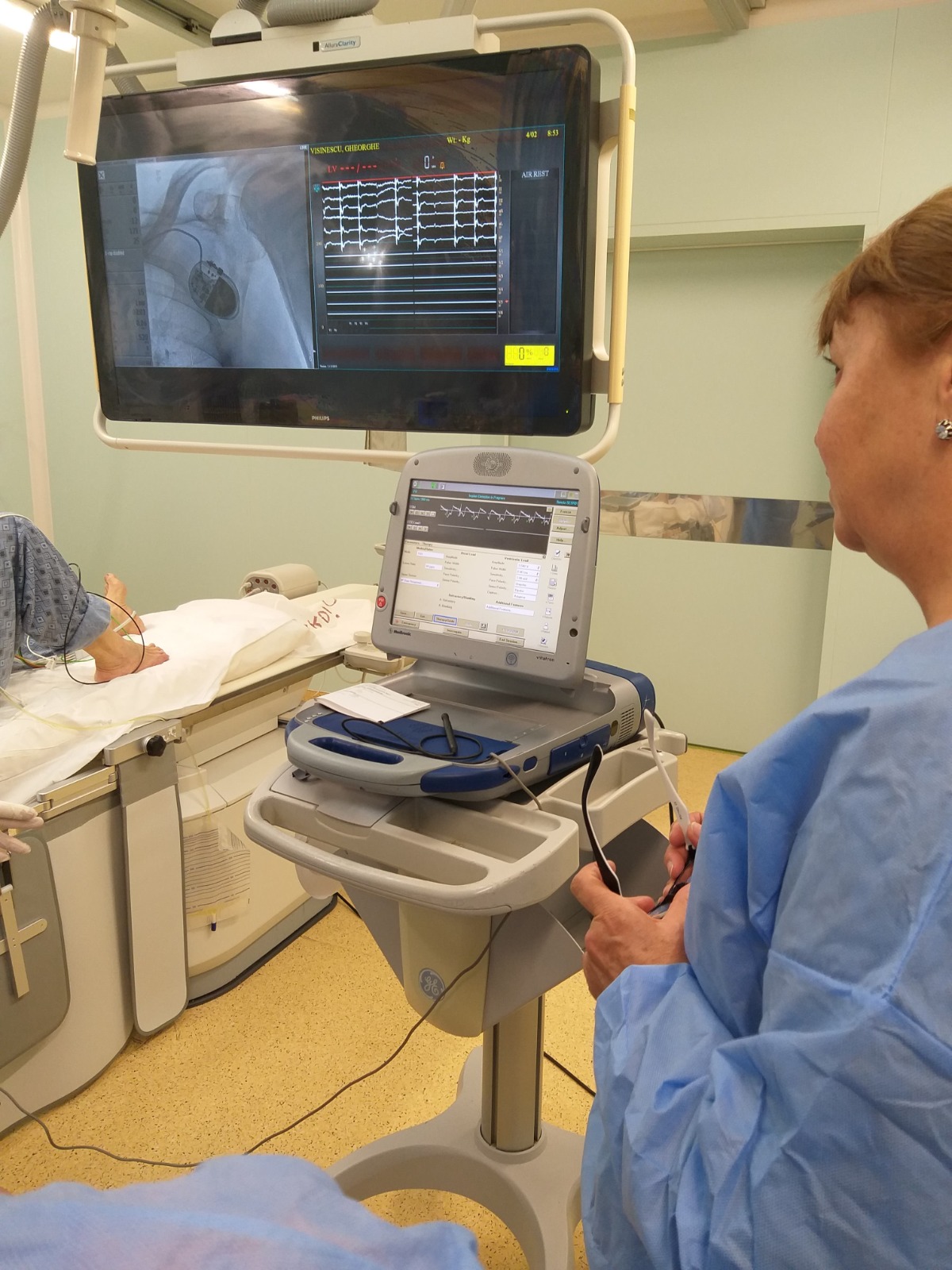 On the second day of the visit, the doctor and the medical assistant from Kozloduy participated to the activity in the Interventional Cardiology and Cardiovascular Surgery Clinic and assisted to the battery change to a cardiac stimulator to a 72 years patient. Discussions about the medical equipment used, the procedure, the recovery time for the patient etc. were held among specialists.