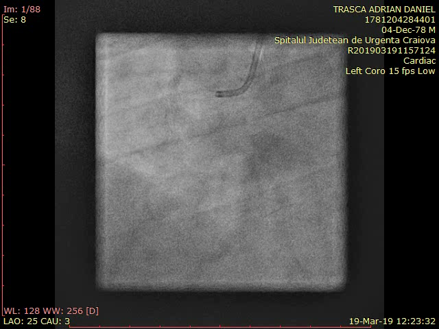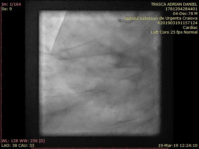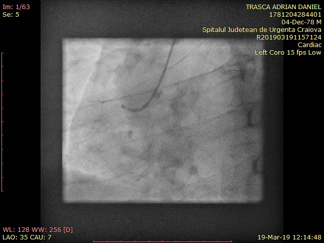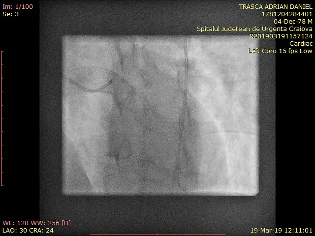 - Evaluarea coronarografică a evidențiat deficit de umplere la nivelul segmentului mediu al ACD, fără limitarea fluxului, posibil tromb sau disecție spontană, fără alte leziuni semnificative angiografic.