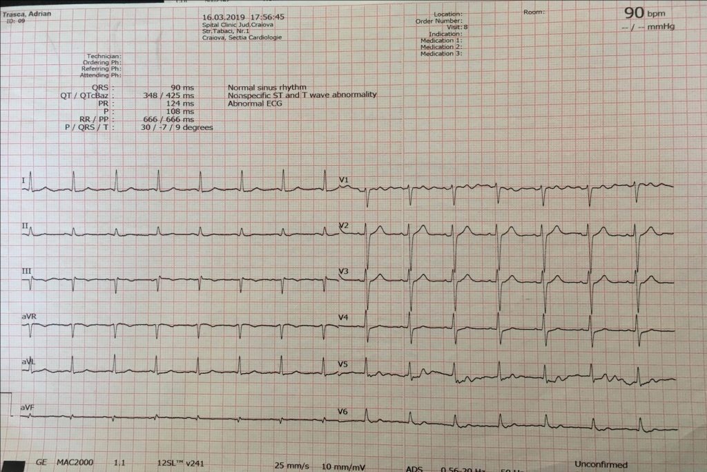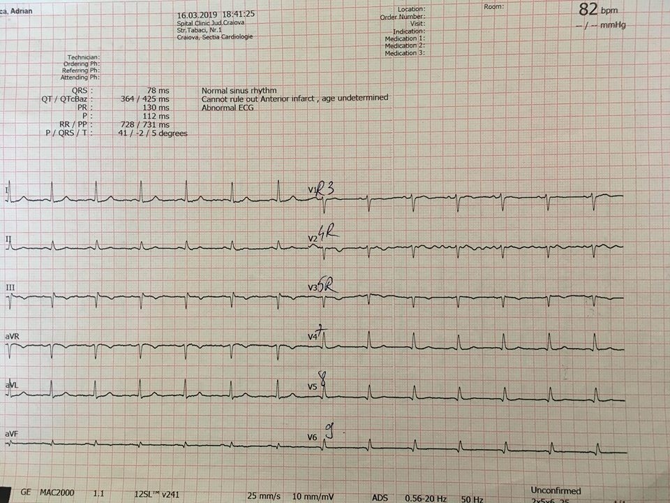 - Este vorba despre un pacient tânăr, fără factori de risc cardiovascular, fără APP cunoscute, care s-a prezentat în serviciul de urgență pentru durere retrosternală cu caracter constrictiv, durată de aproximativ 1 h, însoțită de parestezii la nivelul membrelor superioare;